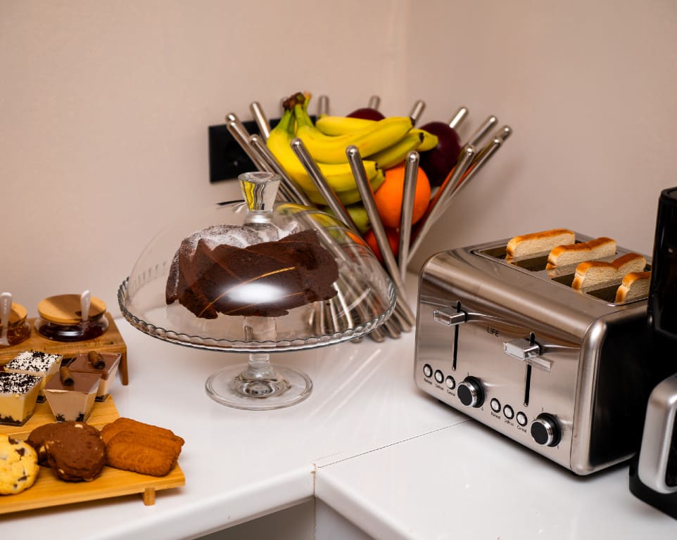 - Επιμελημένο και ισορροπημένο πρωινό διαθέσιμο μέσω room service ή στην κοινόχρηστη περιοχή